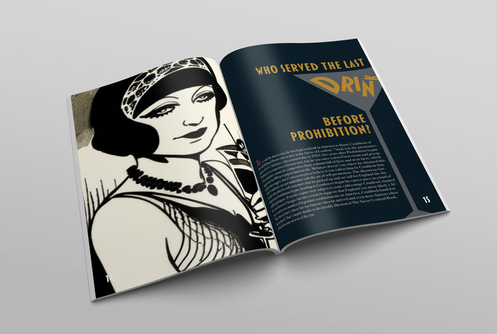 This magazine is a reimagining of Imbibe magazine’s prohibition themed issue. I styled the magazine to be in the aesthetic of a 1920’s speakeasy: dark backgrounds with bold accents of gold and red, art deco inspired type-faces, and stylized text layouts. My goal was to immerse readers in the glamor of the 1920’s while still maintaining Imbibe’s signature style.